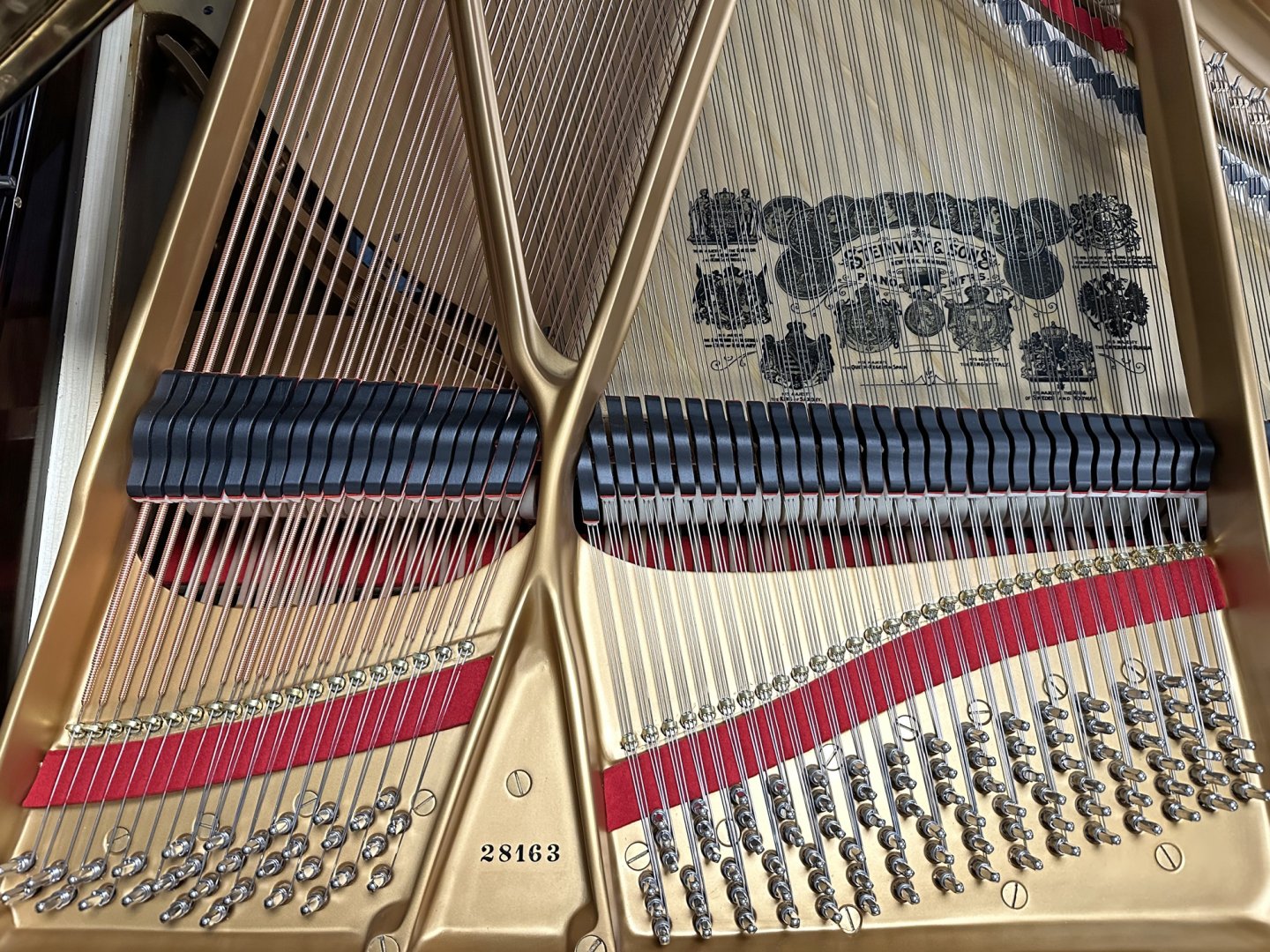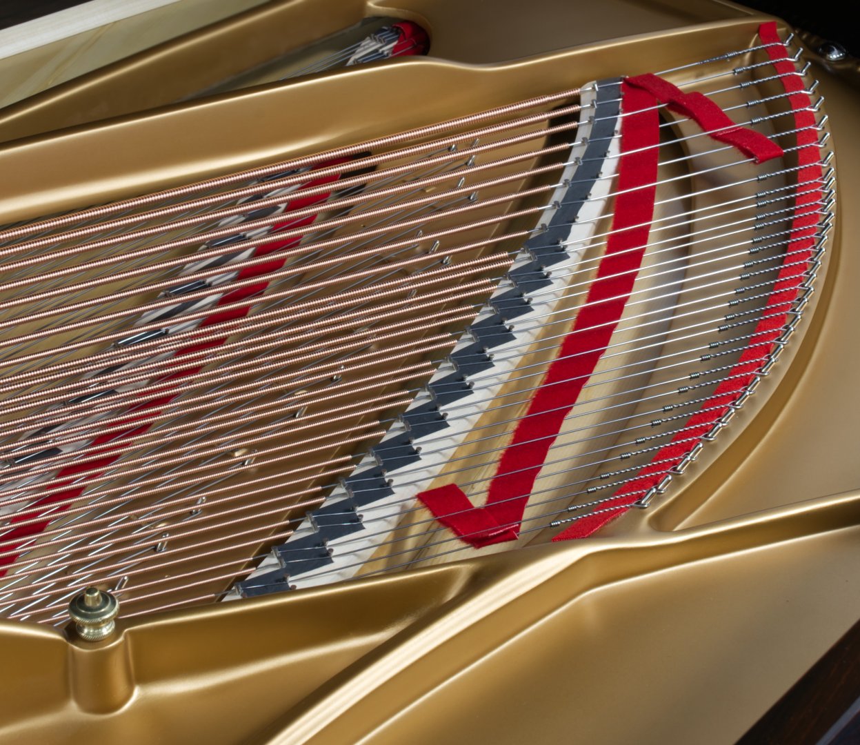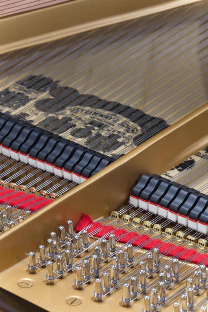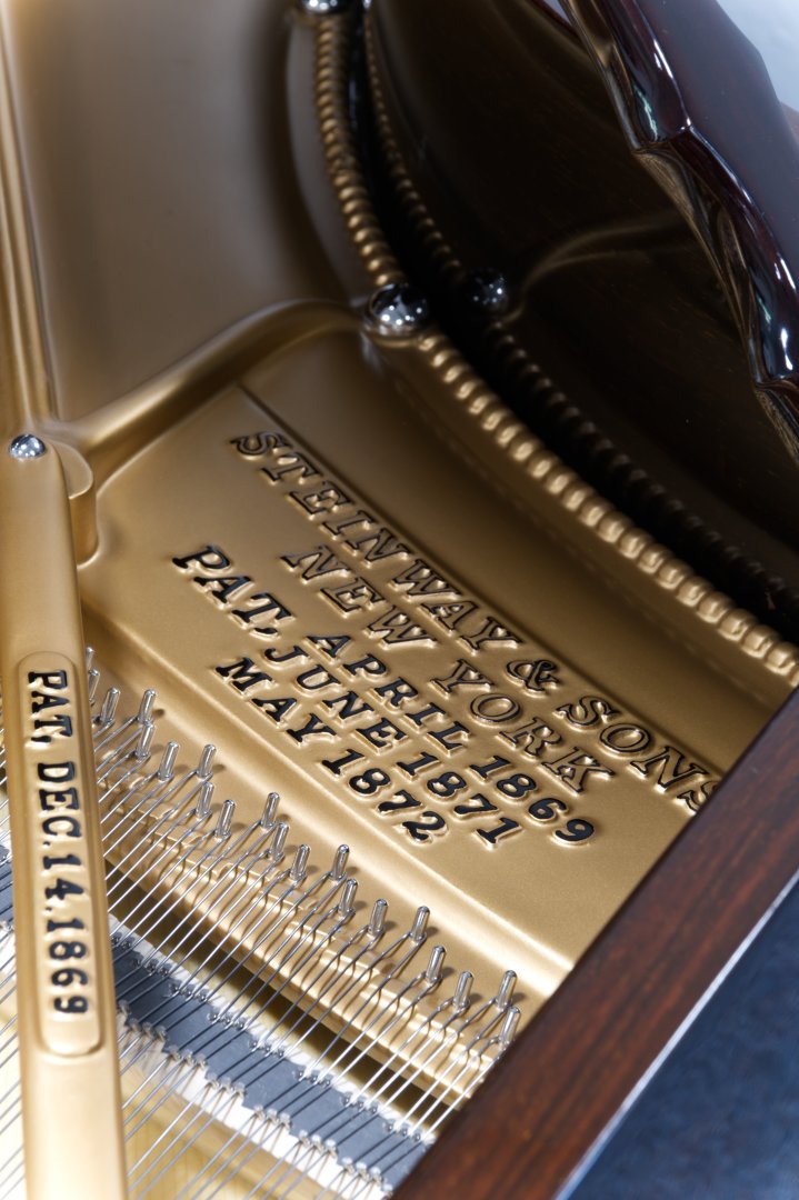 Nur eine kurze Zeit hat Steinway den Resonanzboden so verbaut, wie in diesem Flügel. Im Bassbereich hat das Instrument eine Resonanzboden-Spannvorrichtung.