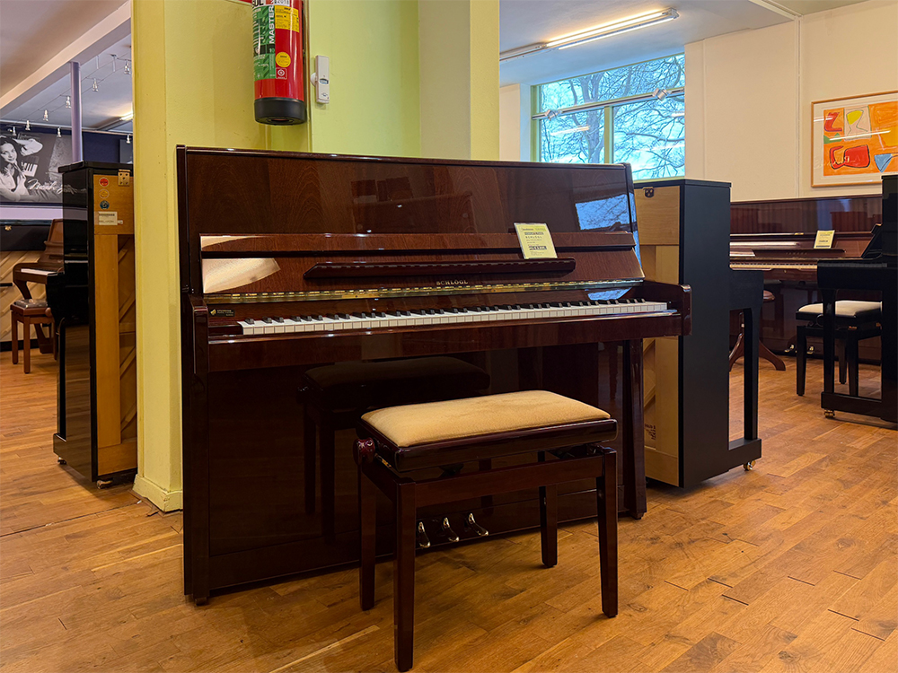 Deze Schlögl 118 Moderna piano is gebouwd in de Bohemia fabriek te Tsjechië. De heeft een prachtige mahonie hoogglans kast. Het is een Europees product met een prachtige warme toon. In Europa worden standaard betere houtsoorten gebruikt, omdat Europese pianobouwers instrumenten willen maken die minstens een mensenleven lang mee gaan. Ook deze piano is door onze technische mensen in een prachtige toestand gebracht.