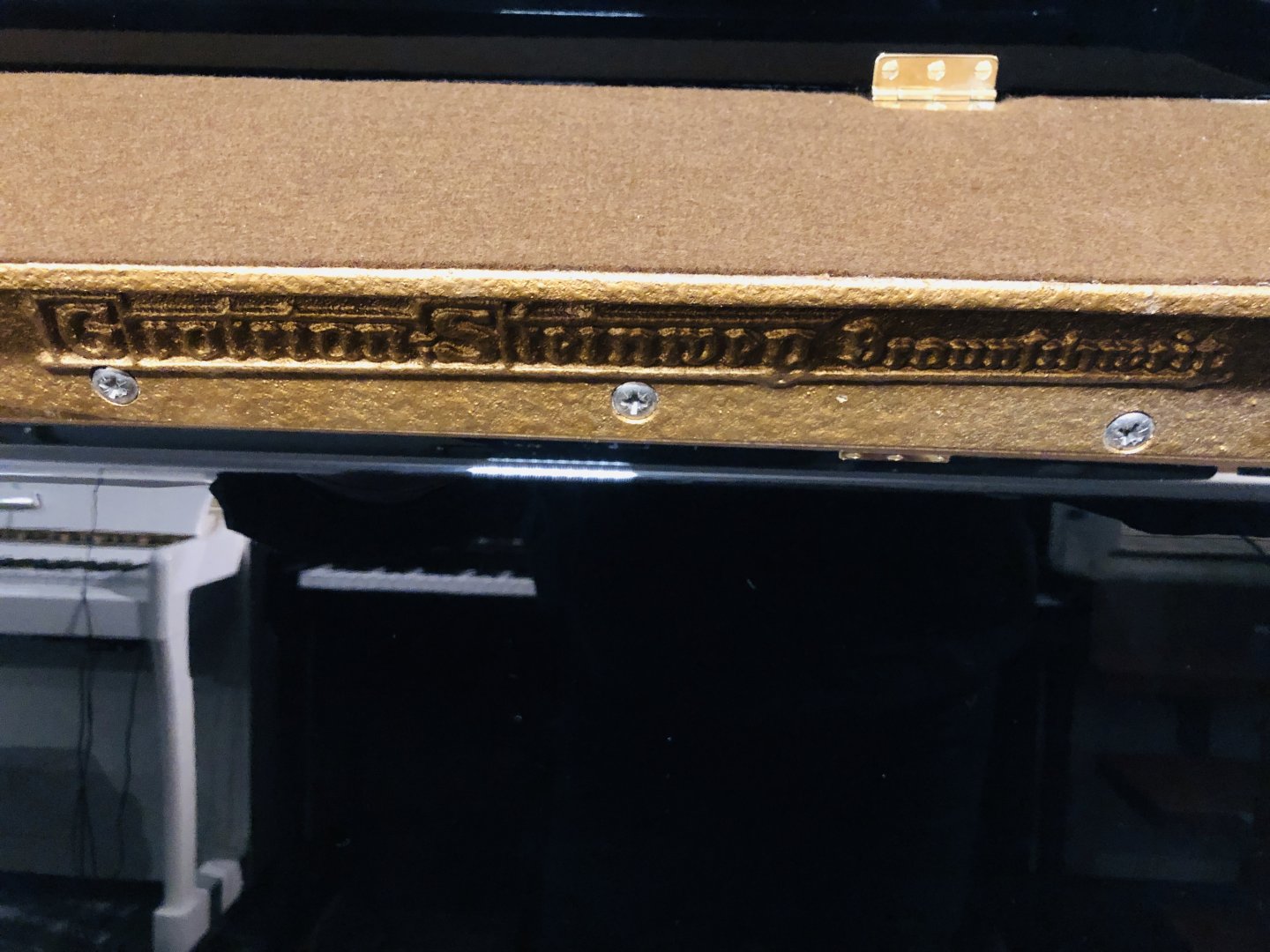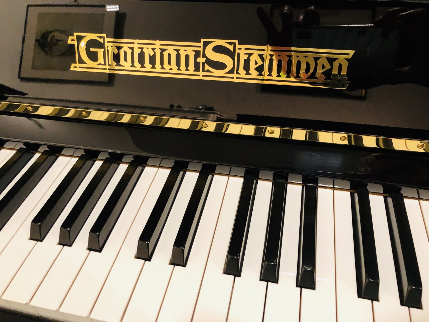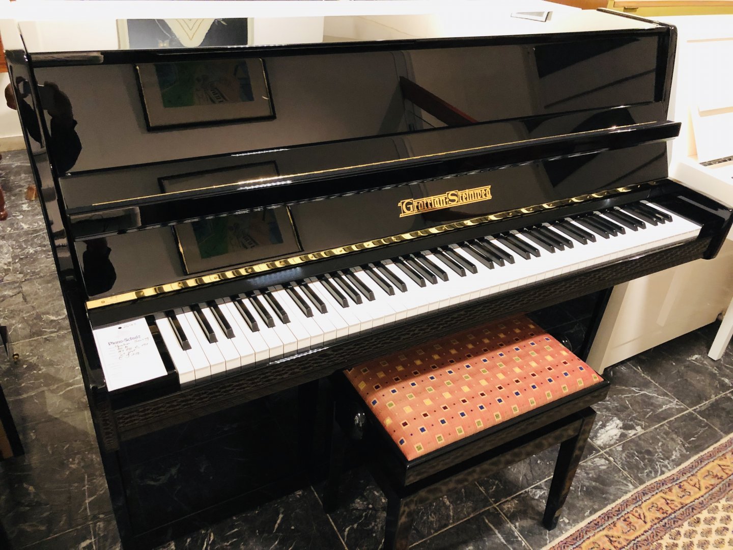 Klavier mit neuer schwarzer Polyesteroberfläche im praktischen schlichten Gehäuse
